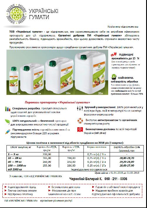 Гумати калію ТМ "Українські гумати" – мають саму низьку вартість обробки 1 га. – 36 грн..